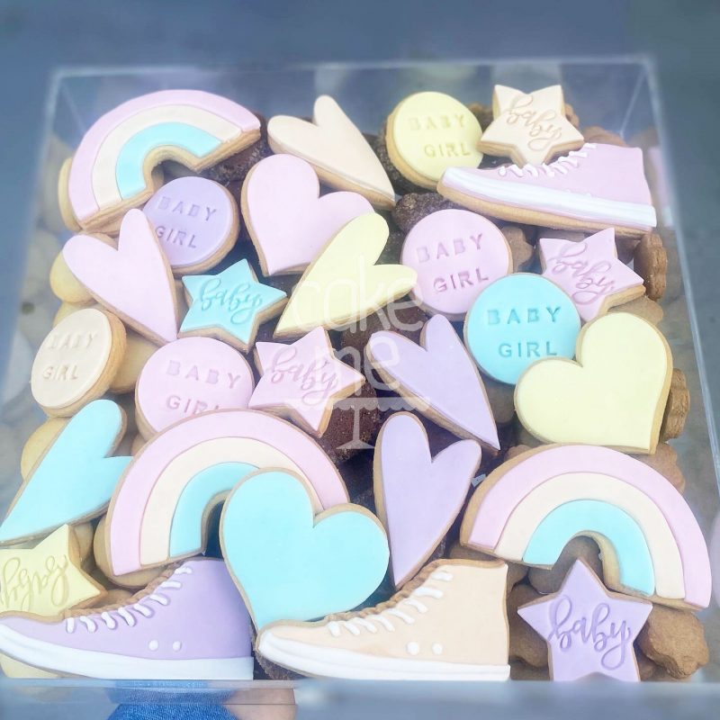 Μπισκότα σε σχέδια καρδιά, αστέρι, ουράνιο τόξο και παπούτσι για Baby Shower κοριτσιού