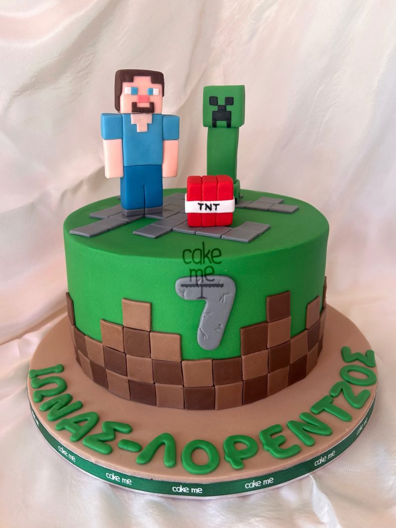 Μια τούρτα για αυτούς που αγαπάνε το gaming και τα βιντεοπαιχνίδια με θέμα Minecraft με τρισδιάστατες φιγούρες από ζαχαρόπαστα.