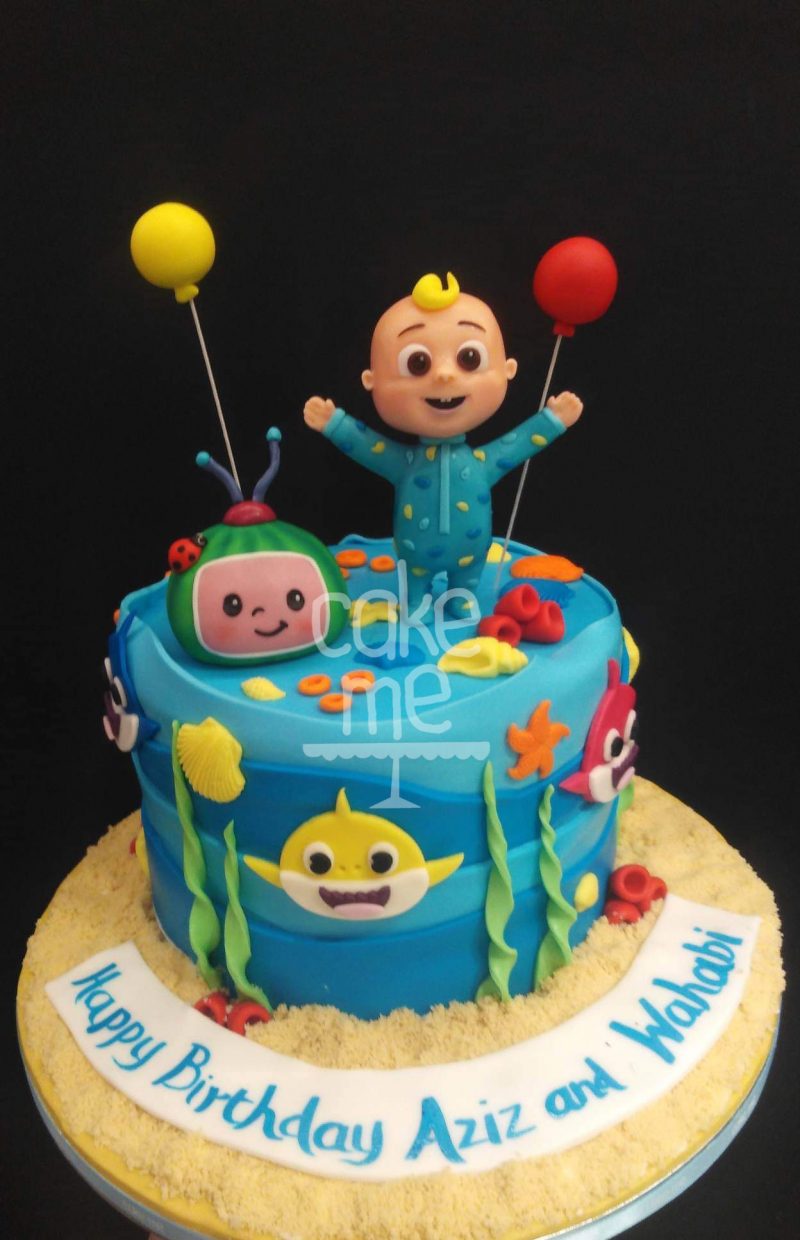 Δύο θέματα σε μία τούρτα. Cocomelon και baby shark για κάποιον που δεν μπορεί να αποφασίσει 🙂