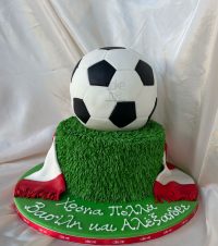 Μια τούρτα για τον Μάριο με την φιγούρα του φτιαγμένη από ζαχαρόπαστα να δουλεύει στον υπολογιστή μαζί με τα δύο σκυλάκια του. Από την τούρτα επίσης δεν θα μπορούσε να λείπει το σήμα με το